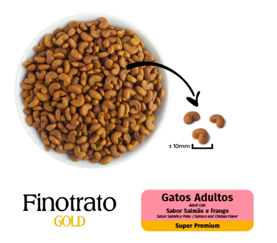 Farinha de salmão, farinha de vísceras de aves, milho integral moído*, farinha de torresmo, farelo de glúten de milho 60*, proteína concentrada de soja*, levedura autolisada de cana-de-açúcar, polpa de beterraba, celulose em pó, biomassa de microalga (Schizochytrium sp.), hidrolisado de fígado de aves, óleo de aves, cloreto de sódio (sal comum), cloreto de potássio, ácido cítrico, antioxidante (BHA e BHT), metionina, taurina, ácido propiônico, vitaminas (A, D3, E, B1, B2, B6, B12, K3, ácido nicotínico, ácido fólico, biotina, pantotenato de cálcio e cloreto de colina), sulfato de ferro, sulfato de cobre, sulfato de zinco, iodato de cálcio, selenito de sódio, sulfato de manganês, óxido de zinco, bissulfato de sódio, cloreto de amônio, hexametafosfato de sódio (0,1%), mananoligossacarídeo, bentonita, zeólita (1%) e extrato de Yucca (0,03%).