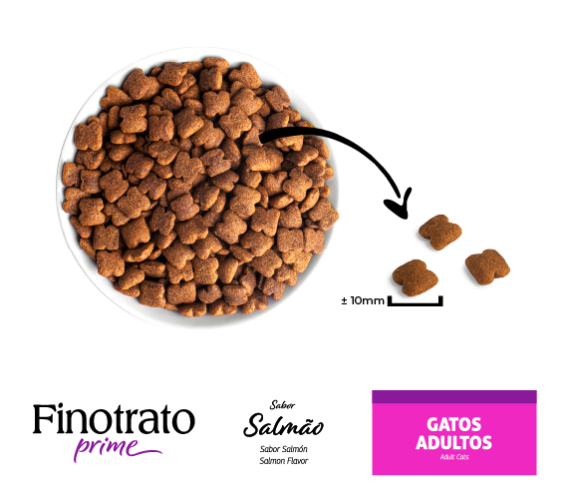 Farinha de salmão, farinha de vísceras de aves, milho integral moído*, sorgo integral moído, quirera de arroz, farelo de soja*, farelo de glúten de milho 60*, óleo de aves, hemácia desidratada de bovinos, vegetais desidratados (cenoura, ervilha, batata-doce, beterraba, salsa, espinafre, abóbora e salsão), biomassa de microalga (Schizochytrium sp.), levedura autolisada de cana-de-açúcar, hidrolisado de fígado de aves, cloreto de sódio (sal comum), cloreto de potássio, ácido cítrico, antioxidante (BHA e BHT), metionina, taurina, ácido propiônico, vitaminas (A, D3, E, B1, B2, B6, B12, K3, ácido nicotínico, ácido fólico, biotina, pantotenato de cálcio e cloreto de colina), sulfato de ferro, sulfato de cobre, sulfato de zinco, iodato de cálcio, selenito de sódio, sulfato de manganês, óxido de zinco, bissulfato de sódio, cloreto de amônio, hexametafosfato de sódio (0,1%), mananoligossacarídeo, bentonita, zeólita (1%) e extrato de Yucca (0,03%).