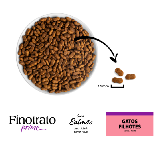 Umidade (máx) 90g/kg (9%), Proteína Bruta (mín) 340g/kg (34%), Extrato Etéreo (mín) 120g/kg (12%), Matéria Fibrosa (máx) 30g/kg (3%), Matéria Mineral (máx) 85g/kg (8,5%), Cálcio (mín) 8.000mg/kg (0,8%), Cálcio (máx) 15g/kg (1,5%), Fósforo (mín) 8.000mg/kg (0,8%), Sódio (mín) 2.500mg/kg, Potássio (mín) 6.000mg/kg, Magnésio (máx) 600mg/kg, Taurina (mín) 1.000mg/kg, Metionina (mín) 6.200mg/kg, Mananoligossacarídeos (mín) 500mg/kg, Galactoligossacarídeos (mín) 2.400mg/kg, Ômega 6 (mín) 15g/kg, Ômega 3 (mín) 1.400mg/kg, DHA (Ácido Docosahexaenoico, mín) 400mg/kg, Energia Metabolizável 3.950kcal/kg.